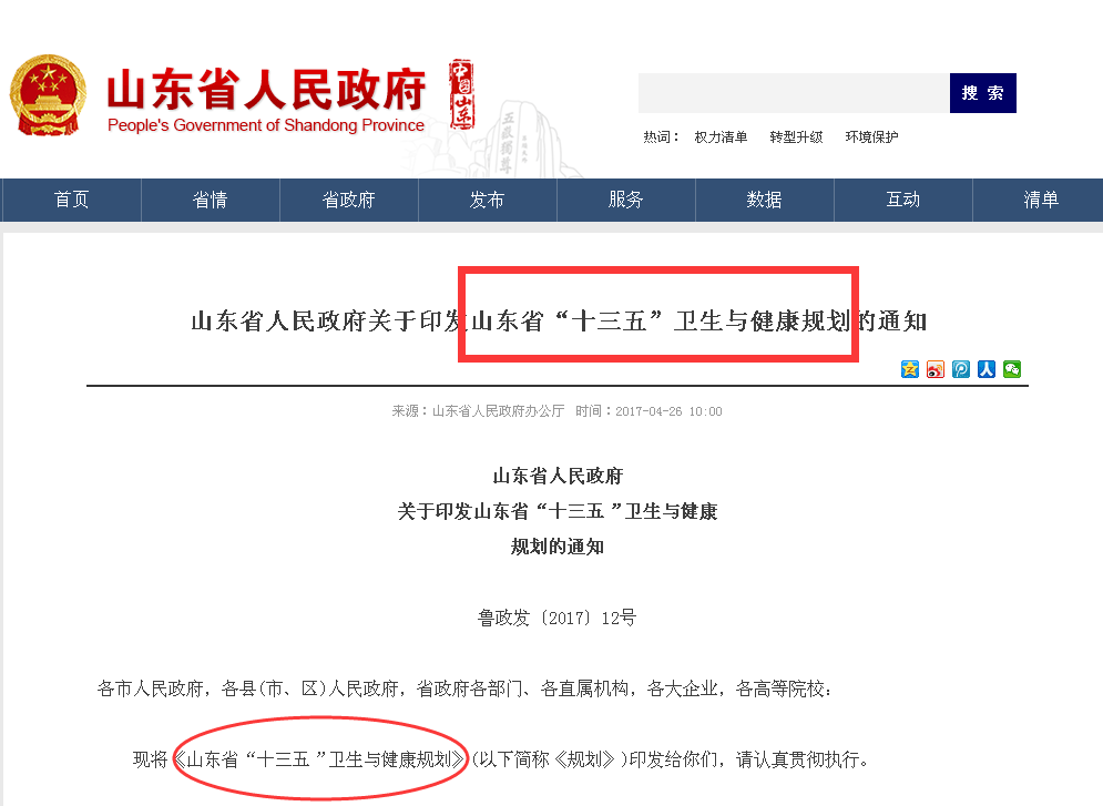 近日,《山东省“十三五”卫生与健康规划》(以下简称《规划》)正式发布,山东省人民政府在《规划》中明确提出“打造健康山东”、“重视慢性病人群”,具体内容笔者为您详细整理、重点解读……