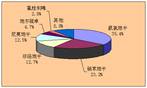 上图选自网络:2004年主要钙通道阻滞剂市场份额占有图