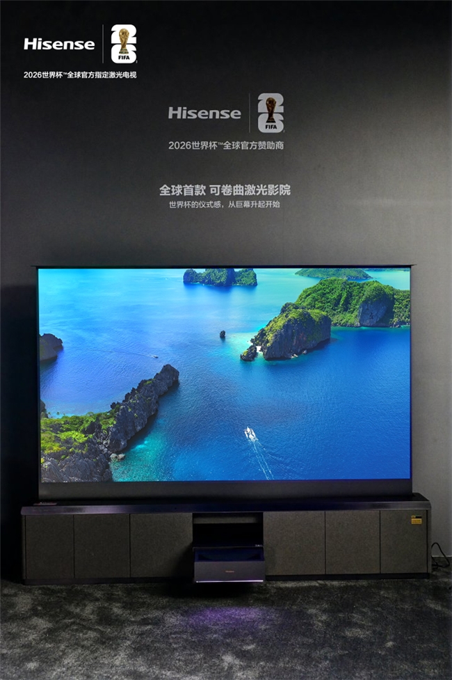12月21日,2026年世界杯全球官方赞助商海信携“大力神杯”及其世界杯定制激光电视亮相青岛奥帆中心。其中,全球首款可卷曲激光影院海信激光影院江山画卷R1首次在线下展出便人气爆棚,展厅秒变“世界杯现场”,提前点燃了球迷对2026世界杯的观赛热情。此外,2026世界杯定制激光电视海信星光S1纯享版也亮相现场,打造更加护眼的世界杯观赛体验。