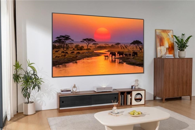 海信星光S2纯享版不仅颜值在线,更以“轻薄省空间”的设计巧思满足现代家居需求。其主机体积较上代缩小33%,多种电视柜都能轻松安放,不挑场景更省空间;100吋屏幕更是薄至1.7cm,纯平背板实现“真·零缝隙”贴墙;18kg超轻机身可以直接安装在普通石膏板隔墙上,无需提前加固、改造墙面。此外,数字画廊功能让其屏幕待机时能显示艺术画作、家庭照片、自然风景等,开机即是影院,关机亦是装饰,完美适配当下流行的极简、法式、奶油、中式美学等多种家装风格。