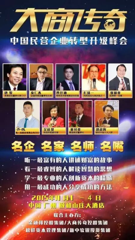 (秦仁杰携手唐骏老师隆重主办《大商传奇》资本峰会)